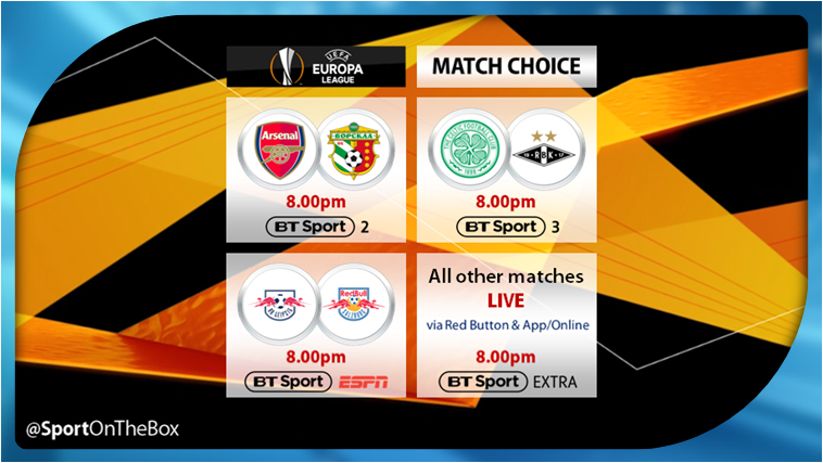 Sport On The Box On Twitter Football Live Europaleague Tonight S Games On Btsport Featuring Arsenal V Vorsklacomua Celticfc V Rbkfotball Match Choice Via Btsport Extra Goal Clips Via Btsportfootball Https T Co Kkqa6apdqo Https T Co